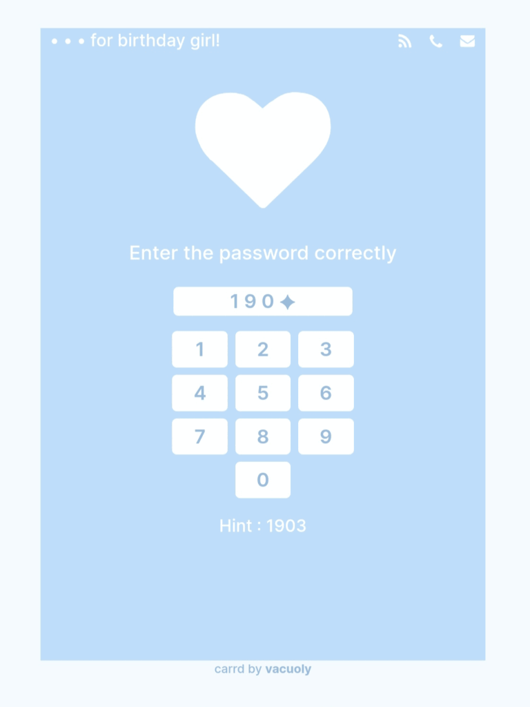 Penambahan halaman atau page baru di carrdmu. Design disesuaikan dengan keinginan customer.୨୧ ADDING PASSCODE/PASSWORD (Rp 1.000)